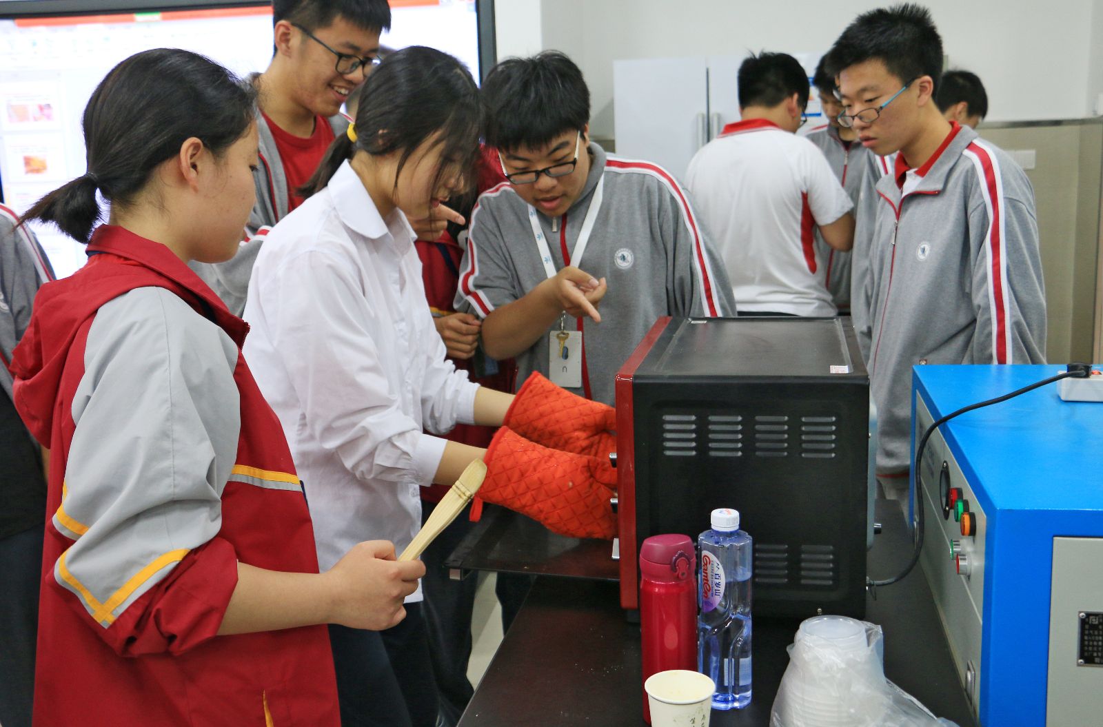 会后,一行人先后参观了花卉路基地和五厍物联网示范园区。2016级学生参与“食品烘焙”学农实践项目体验,师生们一起学习并动手制作品尝了焙烤食品。