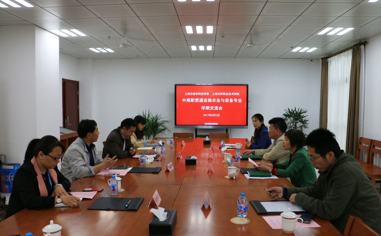 会上,谢锦平介绍了学院建设发展及五厍基地概况,着重介绍了学院作为全国农业物联网示范基地的建设情况。他强调,第一,当前专业建设要适应未来行业市场需要,注重学生专项技能的培养和训练;第二,结合学院承担的教育部设施农业与装备专业教学标准建设工作,进一步推进专业内涵建设,细化任务分工和时间节点,积极推进在课程标准和教材编写工作;第三,贯彻落实课程思政工作,在课程标准编写和人才培养方案修订中落实推进,挖掘和突出专业课程的育人功能。张巨浪肯定了双方的中高贯通合作培养工作,提出要进一步研究课程贯通、师资融通,中职校更要积极主动的对接,加强互动交流,将中高贯通方案落地落实,凸显专业特色,积极迎接上海市教委的贯通专业一年跟踪评估检查工作。