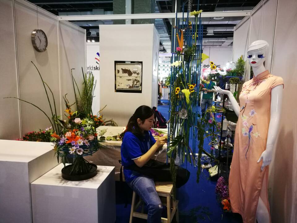 其中,我院学生陆多佳在选拔赛中过关斩将,获得此次大赛“花艺”项目的参赛资格,与来自奥地利、西班牙、法国等国家和地区的选手同台竞技。花艺比赛有4个竞赛模块,包括架构花束、房间装饰、新娘花饰、惊喜盒作品的设计与制作。陆多佳创作作品的整洁度、造型的稳定度、作品的色彩搭配和意义表达等,较好的呈现了她的临场应变和快速创作能力。
