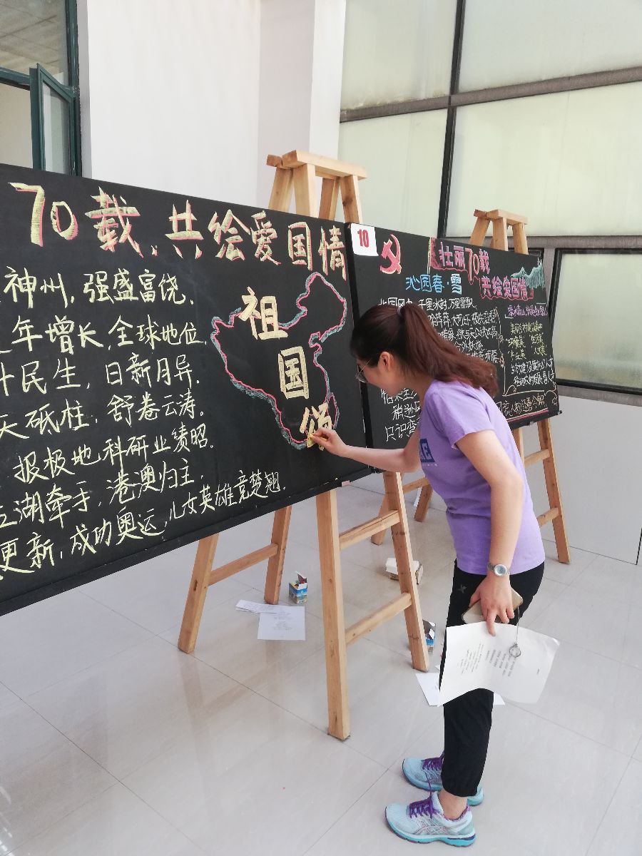为迎接新中国成立70周年, 5月24日下午13:00在综合教学楼二楼阳光走廊,院工会联合教务处,举办了以“壮丽70载,共绘爱国情”为主题的青年教师板书大赛。来自6系2部及相关部门的20名教职工参加了本次比赛。