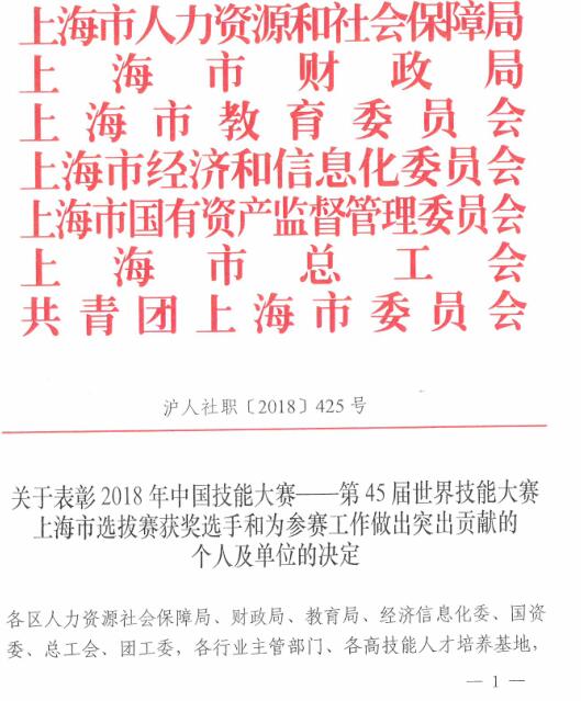 近日,上海市人力资源和社会保障局联合上海市教育委员会等多部门颁发《关于表彰2018年中国技能大赛——第45届世界技能大赛上海市选拔赛获奖选手和为参赛工作作出突出贡献的个人及单位的决定》,我院共12名师生获表彰,在花艺项目中,学生许爱萍、姜知其荣获三等奖,虞晓天、高志强、蔡雯婧荣获优胜奖,获奖学生均获艺术插花专项职业能力证书;在园艺项目中,学生倪嘉昊、孙毅荣获二等奖,张漭蟒、顾雨博荣获三等奖,赵义坤、徐佳杰获优胜奖。植物科学技术系徐卓颖老师荣获花艺项目“优秀教练奖”。