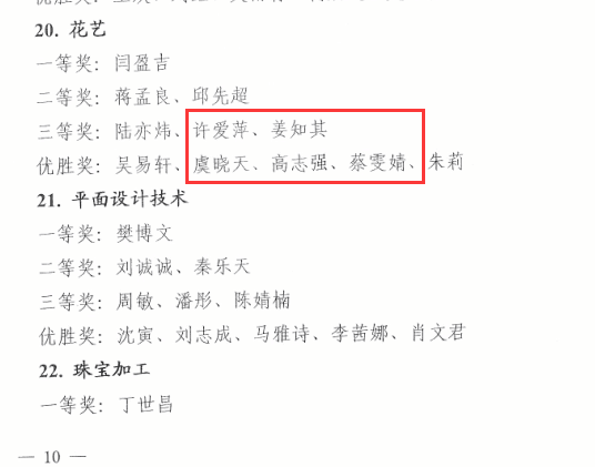 近日,上海市人力资源和社会保障局联合上海市教育委员会等多部门颁发《关于表彰2018年中国技能大赛——第45届世界技能大赛上海市选拔赛获奖选手和为参赛工作作出突出贡献的个人及单位的决定》,我院学生许爱萍、姜知其荣获花艺项目三等奖,虞晓天、高志强、蔡雯婧荣获优胜奖,获奖学生均荣得艺术插花专项职业能力证书。学生倪嘉昊、孙毅荣获园艺项目二等奖,张漭蟒、顾雨博荣获三等奖,赵义坤、徐佳杰获优胜奖。植物科学技术系徐卓颖老师荣获花艺项目“优秀教练奖”。