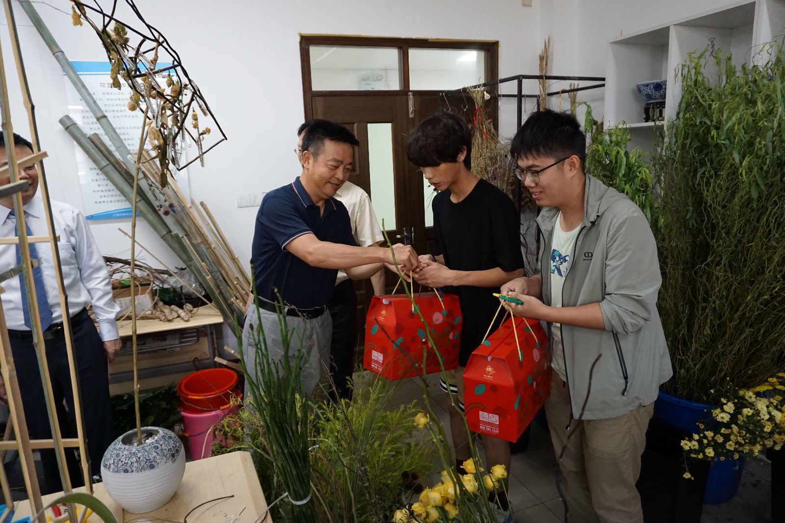 一行人先后前往“花艺”项目和五厍基地的“园艺”项目集训现场,对两个项目的集训进度、选手训练中遇到的困难等情况进行实地了解,并现场观看了选手们的技能操作情况。领导们亲切的与参赛师生交流,鼓励大家把握机会认真备赛,关注细节、对标要求,刻苦训练、精益求精,以积极的心态备战,做好心理调适和体能准备,并对参赛选手和指导教师的辛勤付出表示感谢,为他们送上慰问礼品。