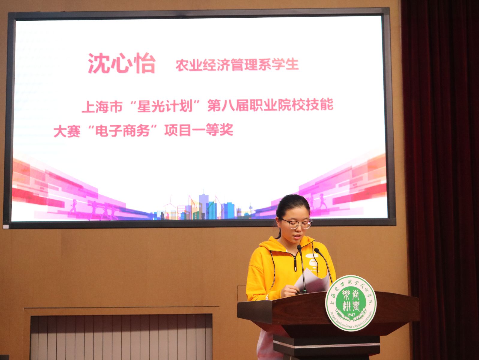 会上,陈谊宣读了农林学院和市农校《关于表彰2018-2019学年度参加技能竞赛获奖学生及指导教师的决定》,两校师生共计225人获得表彰。随后,学院领导为2019年全国职业技能大赛、上海市“星光计划”第八届职业院校职业技能大赛、体育类比赛、创新创业类比赛和其他技能大赛的获奖学生及指导教师颁奖。