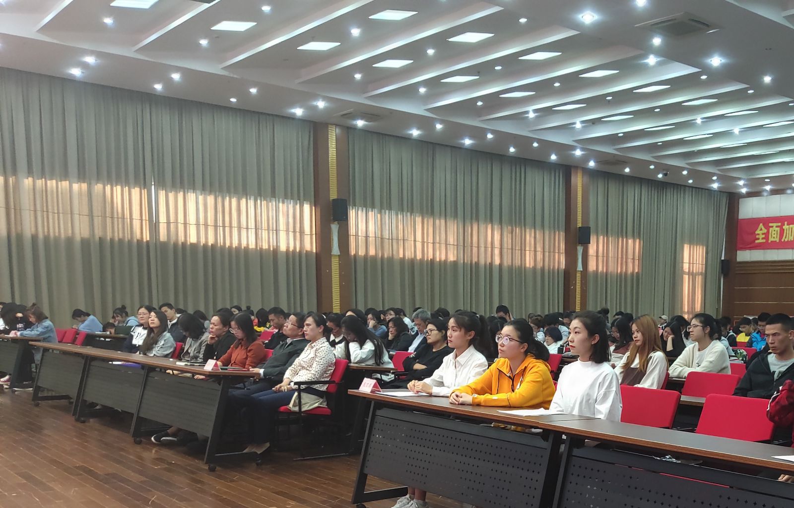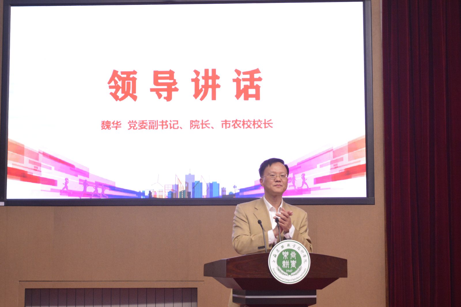 10月30日下午,学院(校)2018-2019年度各类技能竞赛表彰大会在综合楼报告厅隆重召开。学院院长、副书记,市农校校长魏华,党委副书记、副院长、市农校副校长陈谊,学院副院长、市农校副校长谢锦平出席会议,获奖师生以及各系师生代表200余人参加会议。谢锦平主持会议。