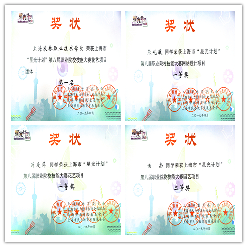 本届“星光计划”大赛中,我校学生共参加“花艺”“园艺”“电子商务”“网站设计”等16个赛项,共13名学生获奖,荣获3项一等奖、4项二等奖、4项三等奖。高职组沈心怡获“电子商务”项目一等奖,许爱萍和杨灵芝分别获“花艺”项目一等奖和二等奖,熊屹敏、张兴盛分别获得“网站设计”项目一等奖和二等奖,贾逸昊获“非英语专业口语”项目三等奖,沈可沁、韩提提获“导游服务”项目三等奖,潘玉霞、黄枭、马一鸣获“园艺”项目二等奖。中职组宋沉香获“计算机操作”项目三等奖,孙毅获“园艺”项目二等奖。此次比赛首次开设教师组比赛,农信系谭春茂代表学院参加“网站设计”项目并荣获二等奖。
