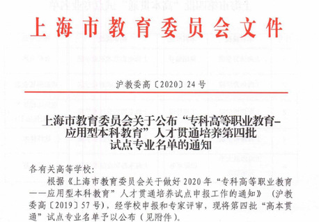 4月3日,市教委公布了“专科高等职业教育—应用型本科教育”人才贯通培养第四批试点专业名单(沪教委高〔2020〕24号),我院软件技术专业对接上海建桥学院软件工程专业,实行“高本贯通”。