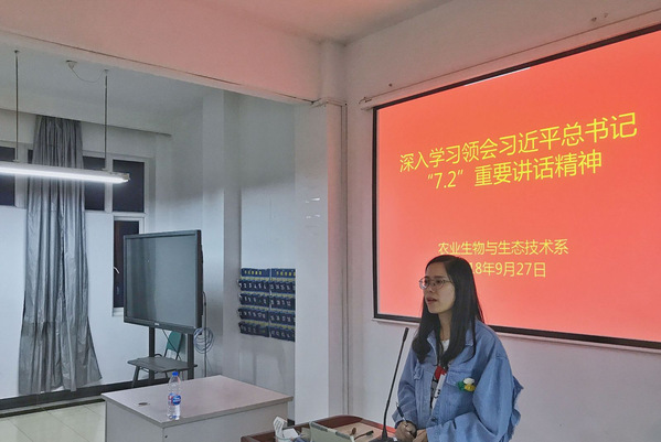9月27日,农生系师生认真学习习近平总书记“7·2”重要讲话精神。系统领会习近平总书记关于青年工作的重要思想,持续深化对习近平新时代中国特色社会主义思想和党的十九大精神的学习贯彻。始终牢固坚定“四个自信”,切实增强“四个意识”,在思想上政治上行动上同以习近平同志为核心的党中央保持高度一致,用习近平总书记重要讲话精神统一思想、指导实践、推动工作……一股认真学习习近平总书记“7·2”重要讲话精神、抓好落实的热潮正在我系师生中涌动。