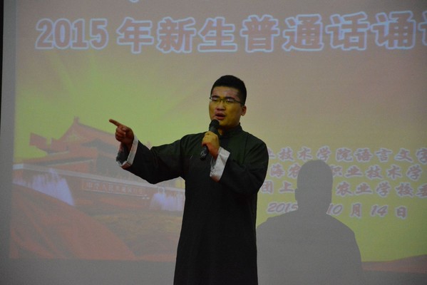 近期,园艺园林系园林152班张振洲同学凭借一篇《誓者》,以他慷慨激昂、声情并茂的诵读,从20余名选手中脱颖而出,赢得了评委的高度评价,以优异成绩获得了“2015年学院普通话诵读比赛”第一名。