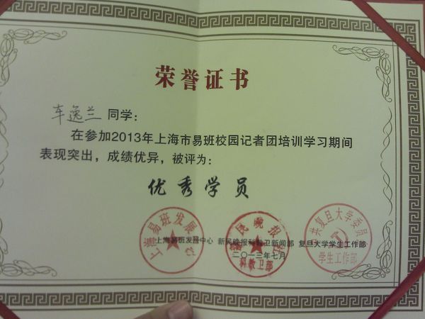 日前,由复旦大学、上海易班发展中心组织的2013年上海市易班校园记者团培训在复旦大学举行,我院选派了易班组织部干事车逸兰同学参加了此次培训。