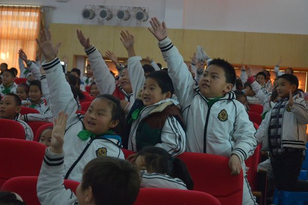 广大师生对艺术团的到来也是欣喜万分,学校的礼堂里,座无虚席。在喜庆的现代舞《MY MY》音乐中,演出拉开序幕。歌曲《桃花谣》、相声《互动》、啦啦操表演《中国范儿》、二胡独奏《赛马》等10余个雅俗共赏的节目令孩子们看得如痴如醉,情不自禁地跟着节奏鼓掌、欢呼。节目中间穿插了环保知识有奖问答和脑筋急转弯小游戏,同学们踊跃抢答,现场气氛热烈。特别是当一曲《我的歌声里》音乐响起时,全体孩子们群情激昂,大家齐声高歌,欢乐的歌声回荡在整个礼堂。伴随着歌伴舞《相信》的表演,全体演员走上舞台,活动圆满落下帷幕。
