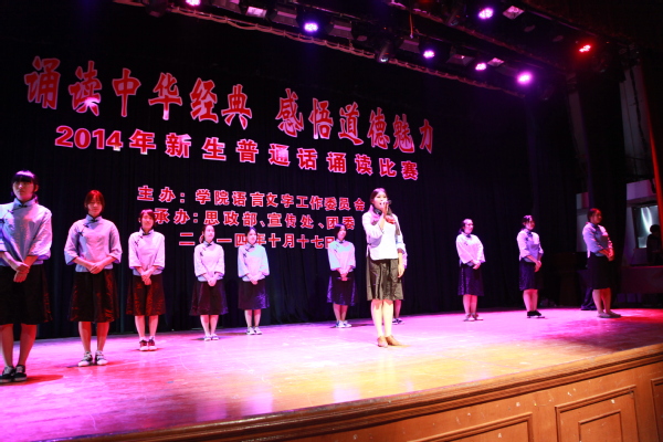 樊清誉上台致辞,她说每年学院精心组织新生普通话比赛,在于进一步活跃校园文化氛围,为广大同学提供一个锻炼能力、展示个性魅力的舞台,提高同学们的综合素质和能力,希望广大新生尽快融入上农这块乐耕之地,把握好人生出彩的机会,让理想和道德之光照亮我们追求梦想之路。