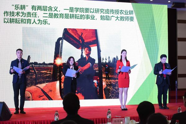 开幕式分《传统文化育人文》《渊源农耕浓人情》《文化自信聚人心》三个篇章。由潘家浜小学学生带来的诗歌朗诵《三字经》拉开活动序幕,汉服展示、中华传统节日介绍、舞蹈《采薇》等让现场师生感受到,在漫长发展中沉淀形成的优秀中华传统文化是中华民族的强大精神纽带。渊源农耕浓人情篇章。通过介绍二十四节气的由来与应用,呼吁要利用多种有益方式将二十四节气文化精髓代代相传。诗朗诵《上农韵》、校歌表演等节目激励全体上农人传承“尚农乐耕 生生不息”的校训精神。文化自信聚人心篇章。大家共同宣读青春奋斗倡议书。通过青春访谈,上海市优秀团员获得者刘雅姗、学院轨交志愿团队负责人李娜和献血标兵赵文静现场分享了自己关于青春理想,青春活力,青春奋斗的经历与感悟,赢得师生阵阵掌声。原创快板《十九大精神放光芒》,展现着上农青年奋发向上、积极进取的精神风貌。全体上农人将不忘初心,牢记使命,坚守农业,服务农村,携手同行,共创新辉煌。