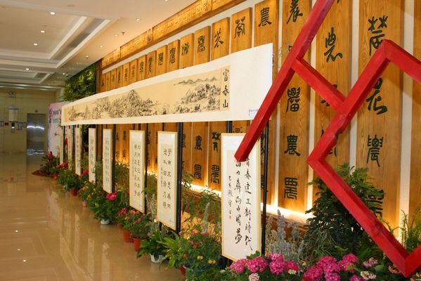 作品展围绕“献礼70周年”的主题,精选具有鲜明传统文化特色的盆景、水墨画、书法、竹子和体现新时代特征的素材为作品元素,以正厅一幅9米长的《富春山》画卷作品为中心,配以高低错落的多种花卉植物创作形成园林小景,向祖国母亲献礼。本次作品展也凝聚了园林系在教学改革、教学研究、工匠型人才培养的部分成果。展厅内10件别具特色的红色主体框架,是参加技能大赛的选手及备战选手共同为此次活动量身定制的;17件玲珑雅致、造型各异的盆景创意作品,依托园林系盆景社团课及植物造型大师工作室指导学生创作而成;4幅昆虫创意作品,依托教师教研课题,积极探索第一课堂与第二课堂有效融合途径,挖掘植物保护类课程中学生感兴趣的课程资源,将昆虫标本中天然的彩翼及翅上彩斑,创作成侍女的衣裙、熊猫的外形及“尚农”主题创意画,在展现昆虫艺术魅力的同时,提高学生对专业课的学习积极性。