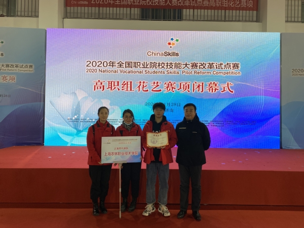 2020年11月25日至29日,2020年全国职业院校技能大赛改革试点赛花艺赛项在山东济南举行,副院长谢锦平带队参赛。我院植科系学生张航在此次全国大赛中突出重围,最终取得了二等奖的好成绩。
