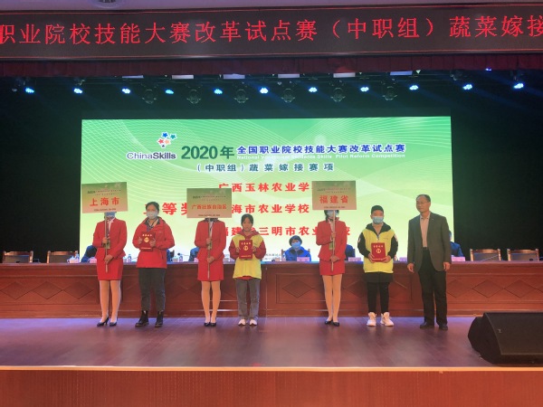 2020年11月26日至28日,2020年全国职业院校技能大赛改革试点赛(中职组)蔬菜嫁接赛项在山东省潍坊市寿光市职业教育中心举行,共有来自全国32支代表队的32位选手参赛。经过激烈角逐,我校植科系学生园艺(中)181学生倪思忆同学在这次全国大赛中获三等奖。