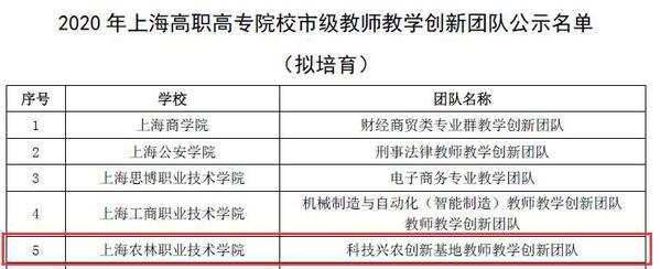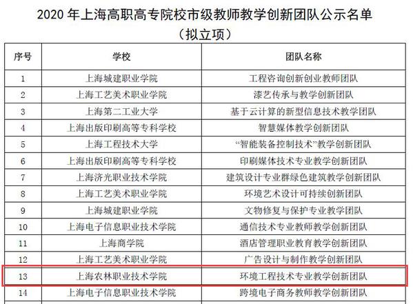图4:2020年上海高职高专院校市级教师教学创新团队公示拟培育名单