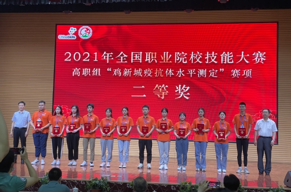 6月17至20日,2021年全国职业院校技能大赛(高职组)鸡新城疫抗体水平赛项在山东畜牧兽医职业技术学院隆重举行。我院动科系学生郑潇雨和孙婧在此次全国大赛中突出重围,最终取得了位列全国第五名、团体二等奖的好成绩。