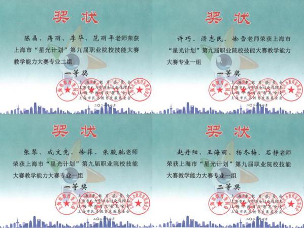本次我校共选送7件作品参加上海市“星光计划”第九届技能大赛教师教学能力比赛,7件作品全部获奖,其中张琴团队、陈晶团队、许巧团队分别获一等奖,赵丹阳团队、李明团队、王妍团队分别获二等奖,王欢欢团队获三等奖。