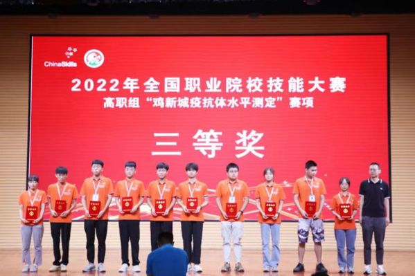 8月17日至19日,2022年全国职业院校技能大赛(高职组)“鸡新城疫抗体水平测定”赛项在山东畜牧兽医职业技术学院举行。我院动科系学生但仁和钟隆发在此次全国职业技能大赛中沉着应对,荣获团体三等奖。