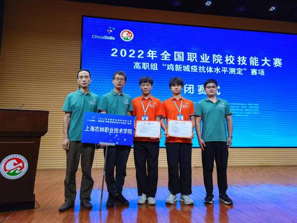 8月17日至19日,2022年全国职业院校技能大赛(高职组)“鸡新城疫抗体水平测定”赛项在山东畜牧兽医职业技术学院举行。我院动科系学生但仁和钟隆发在此次全国职业技能大赛中沉着应对,荣获团体三等奖。