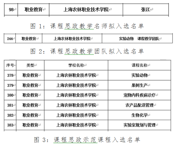 近日,上海市教育委员会发布《关于课程思政示范项目名单的公示》,学院张江老师获批课程思政教学名师,《实验动物》课程教学团队获批课程思政示范团队,《实验动物》《果树生产》《宠物内科疾病诊疗》《农产品配送管理》《生物化学》《实验室规划与管理》6门课程获批市级课程思政示范课程。