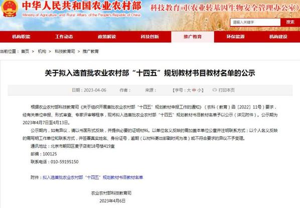学院根据《农业农村部“十四五”规划教材建设指导方案》《农业农村部规划教材管理办法》《关于组织开展首批农业农村部“十四五”规划教材申报工作的通知》要求,积极组织申报工作,成绩斐然。学院将以此为契机,加强政策支持和经费保障,激励教师积极参与教材建设,切实提高学院专业建设和人才培养质量。