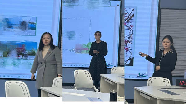 活动中,赵文旻、左宏琴老师负责的2支教学团队分别进行了教学实施报告与无学生教学展示的演练;其中,一名教师汇报教学实施报告,时长8分钟,剩余三名教师分别进行无学生教学展示,总计时长18-24分钟。参赛教师精心准备、思路清晰、精彩呈现,各具特色,展示了教师扎实的基本功底。最后,与会领导和校外专家依据上海市“星光计划”第十届职业院校技能大赛教师教学能力比赛评分指标,从教学语言与教态、教案设计、信息化运用、课程思政等多方面对参赛团队进行了全面深入点评和指导。