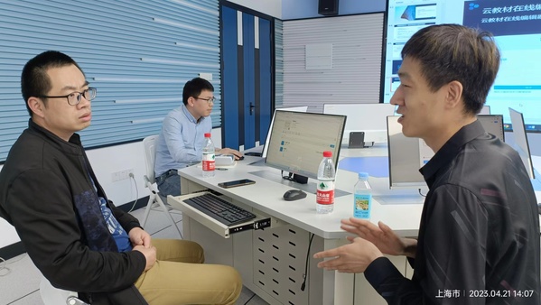 专题会分为理论与实践两个环节。在理论环节,主讲人北京智启蓝墨信息技术有限公司业务主管刘尘以“新形态数字教材创作编写与使用出版”为主题,对数字教材做了详细的介绍,包括国家政策解读,云教材的策划、编写、应用与发行,展示了在线编辑器的具体编写过程。在实践环节,教师们登录编辑器账号、新建章节、书写内容、创建测试题,并就实践操作过程中遇到的问题及数字化教材的出版流程跟培训老师进行了沟通交流,现场气氛活跃、反响热烈。