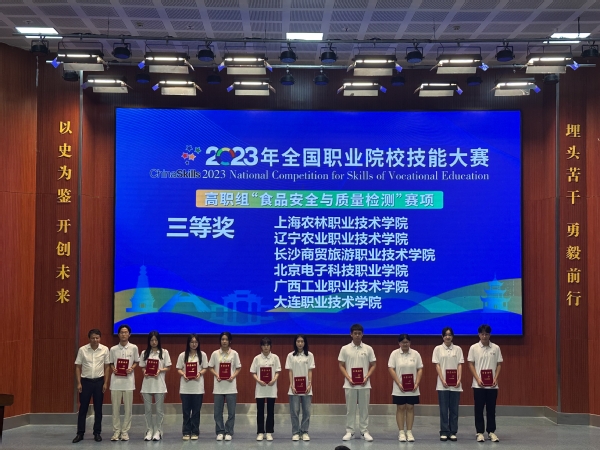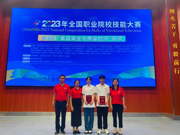 8月16日-20日,2023年全国职业院校技能大赛高职组“食品安全与质量检测”赛项在贵州农业职业学院举行,来自全国各高校共计60支队伍同台竞技。经过激烈角逐,学院生药系雷雨秋和陈岳枫荣获团体三等奖。