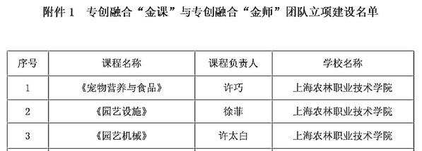 近日,全国高等职业学校校长联席会议双创教育专委会关于公布第二批专创融合“金课”与专创融合“金师”团队立项建设名单的通知,学院选送的《宠物营养与食品》《园艺设施》《园艺机械》3门课程及其团队全部入选建设名单,本次共遴选出第二批符合专创融合“金课”与专创融合“金师”团队立项建设条件的697门课程和697个课程建设团队。
