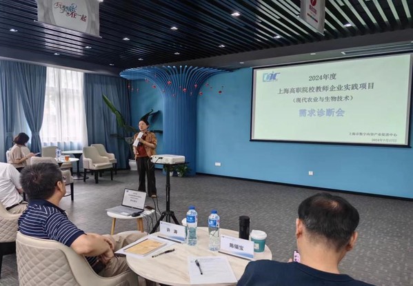 为丰富高职教师企业实践经验,建设一支高素质教师队伍,7月17日下午,2024年上海市高职高专院校现代农业与生物技术类专业教学指导委员会教师企业实践项目需求诊断会在浦东康桥Eone园区25号楼顺利举行。上海教育报刊总社党委书记许涛、上海市高职高专院校土建类专业教学指导委员会主任陈锡宝、上海市高职高专院校现代农业与生物技术类专业教学指导委员会主任蔡红、上海丰科生物科技股份有限公司技术总监李金鑫以及13位企业实践教师出席会议。会议由上海市数字内容产业促进中心副主任丁燕主持。