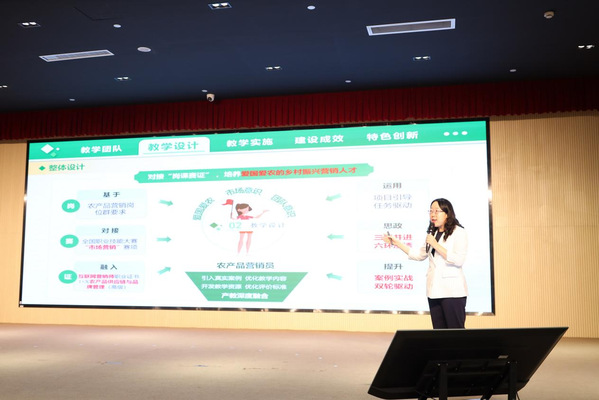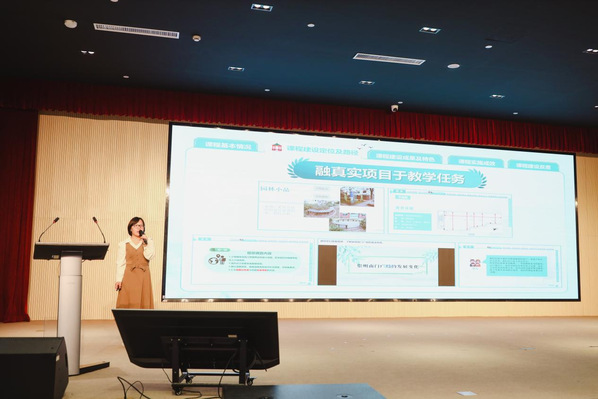 本次教学创新展示活动共计5位老师进行作品分享。来自上海应用技术大学生态技术与工程学院贺坤副院长进行了实践育人创新成果分享;来自上海农林职业技术学院的庹星婧老师展示了第六届上海高校青年教师教学竞赛特等奖作品《园林工程招投标与预决算》(木质地坪工程量计算);来自上海农林职业技术学院的王海丽老师展示了2023年度上海学校课程思政示范课程、课程思政名师项目建设成果《农产品市场营销》课程;来自上海市工程技术管理学校的汪亚辉老师分享了2023年上海市中等职业学校市级在线开放课程《园林设计》建设成果;最后则是来自上海农林职业技术学院的王妍老师分享了教育部农机装备领域课程改革试点项目数字教材《农业绿色生产装备应用》建设成果。