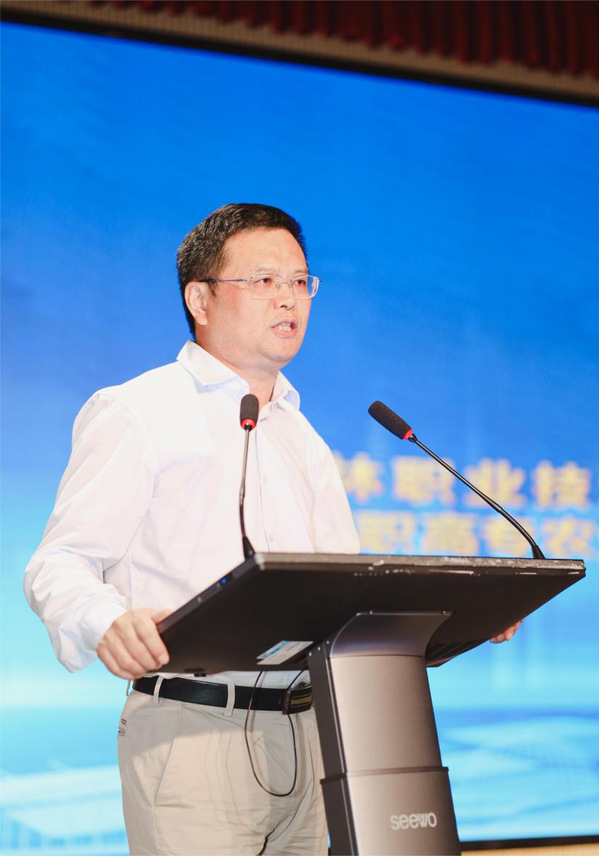 蔡红代表本次活动的主办方和承办校发言,对参加活动的领导和师生表示热烈的欢迎和衷心的感谢,他指出本次活动的举办是为了贯彻“三教改革”精神及中办国办印发《关于深化现代职业教育体系建设改革的意见》,进一步探索和实践现代职业教育的新模式,推动教育教学质量的全面提升,为培养更多高素质技能型人才贡献力量。同时强调教师的主责主业是扎根课程、教材、教学,指出课程建设需从课程思政、信息化资源、“工匠精神、劳动精神、劳模精神”三大精神、创新、新技术新工艺新规范五大方面开展;教材是教学的参考资料,如何建设高质量数字化教材是新时代职教人需思考的问题;教学设计要围绕课堂的三大要素,即学生、学习过程和学习情境,以学生作为主体进行教学设计,进一步提高教学质量。