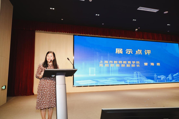 曾海霞在点评时充分肯定了本次活动的意义,她指出教学创新展示交流活动体现了职业教育的课程和教学基本特征——面向实践、强化能力,并对每位老师展示的作品进行了深入的解读。她表示上海职业教育教学改革取得的成绩离不开所有职教条线老师的辛苦付出,希望有更多的人才投身职业教育,实现星星之火、可以燎原,勇担职教使命,助推职业教育高质量发展。