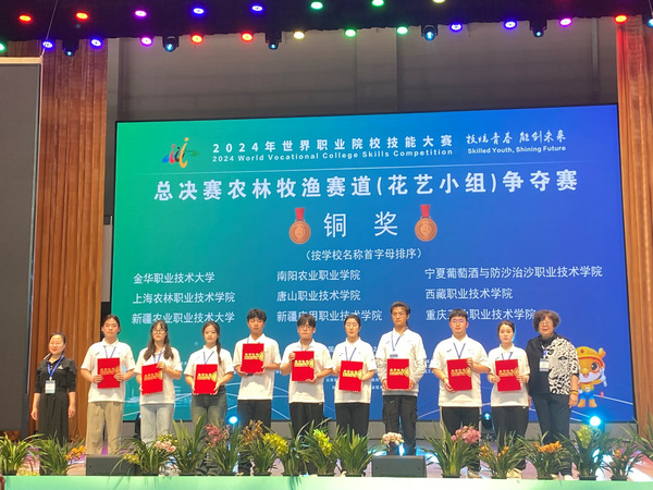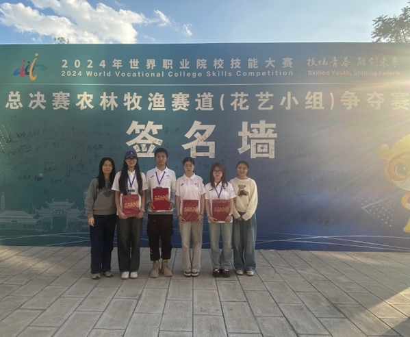10月29日-10月31日,2024年世界职业院校技能大赛总决赛农林牧渔赛道(花艺小组)争夺赛在云南林业职业技术学院石林校区举行,来自全国32个省市自治区的60支参赛队伍共221名参赛选手齐聚云南同台竞技,植物科学技术系刘梦艳、胡译苇、徐靖怡和陈睿智四位同学组成的参赛队获得铜奖。