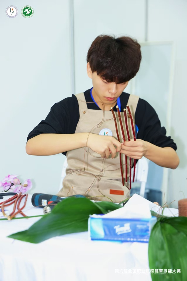 本届大赛由国家林业和草原局主办,是我国林草行业规模最大、水平最高的职业院校技能赛事。大赛以“技能兴林草绿,智向未来”为主题,紧密对接行业实际岗位需求,共设高职组、中职组、教师组等9个赛项。其中,花艺赛项为高职组首次设立,重点考查选手的创意设计能力、实操技法与职业素养三大核心能力。该赛项为团体赛,要求参赛团队在规定时间内完成2件现代花艺作品与2件中国传统插花作品,对选手的综合能力和团队协作能力提出了极高要求。