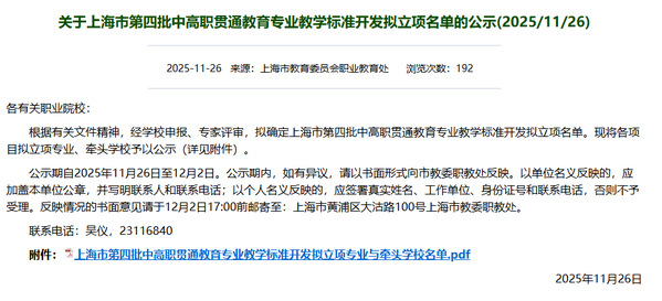 近日,从上海市教育委员会职业教育处获悉,学院申报的生物产品检验检疫中高职贯通教育专业教学标准开发项目立项。
